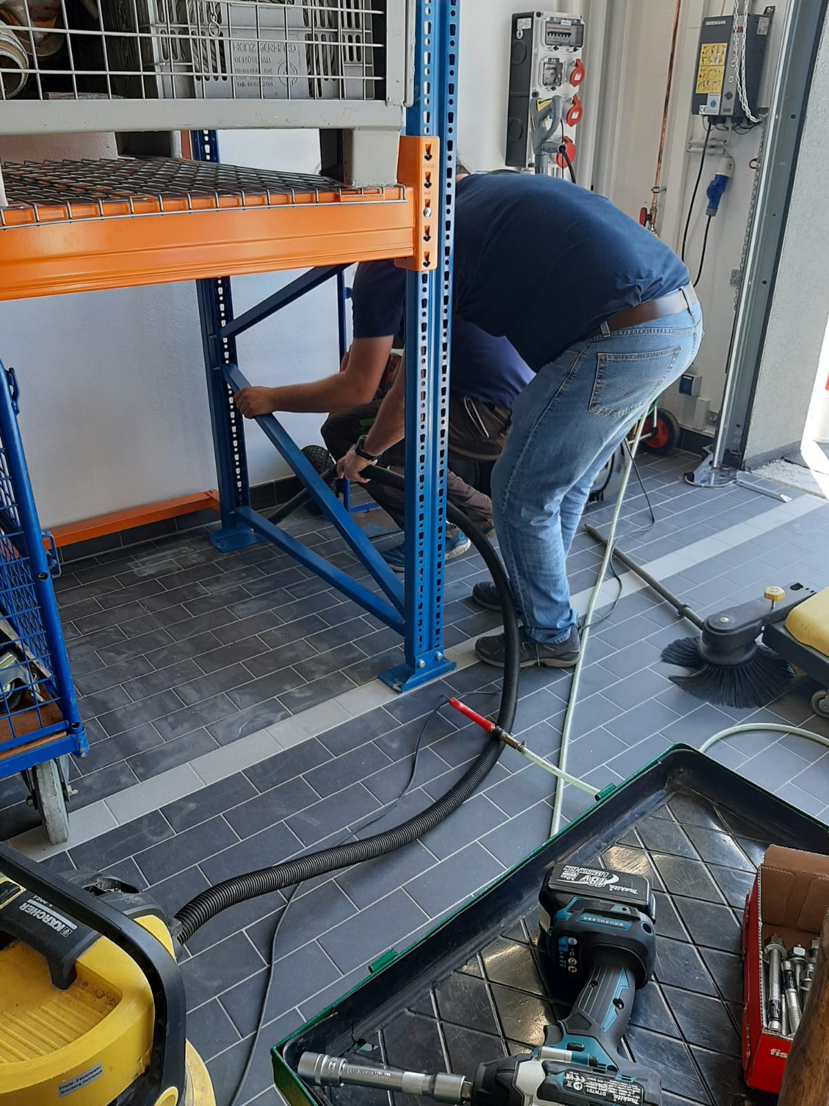 Hierfür wurden ein neuer Hochhubwagen, einige Gitterboxen u.ä. und zwei neue Schwerlastregale angeschafft und von uns aufgebaut.